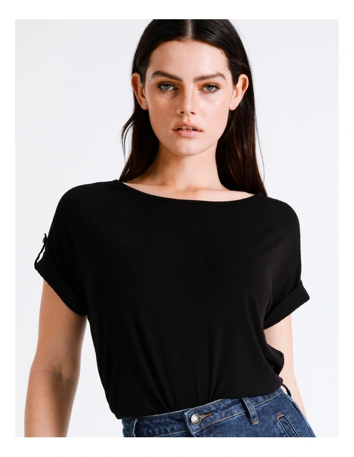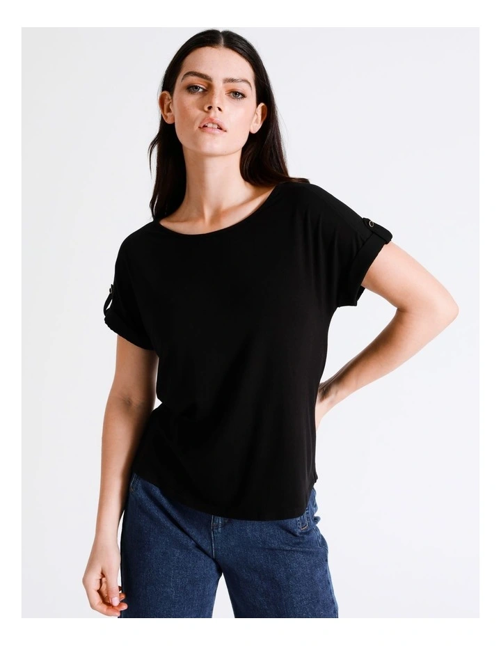 Elevate your everyday wear with our button detail tee. This shirt is decorated with buttons on the sleeves and is made from soft materials for comfort. Style with your favourite denim for a chic finish.