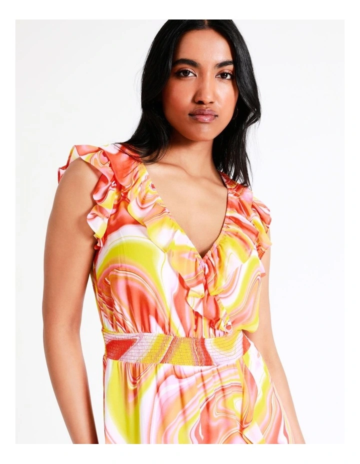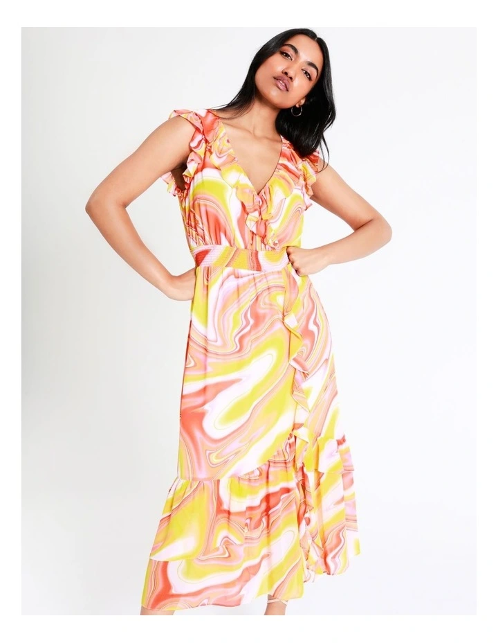 Leave a lasting impression in a statement dress. Decorated with a vibrant all over-print and charming ruffle details, this dress has a flattering design that will accentuate your beauty.