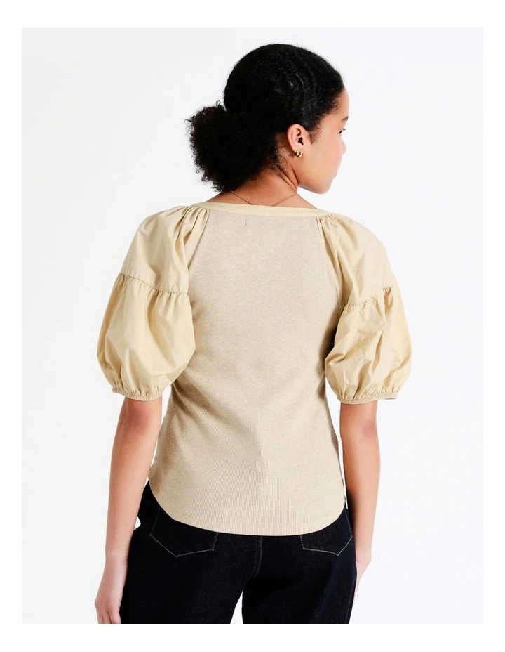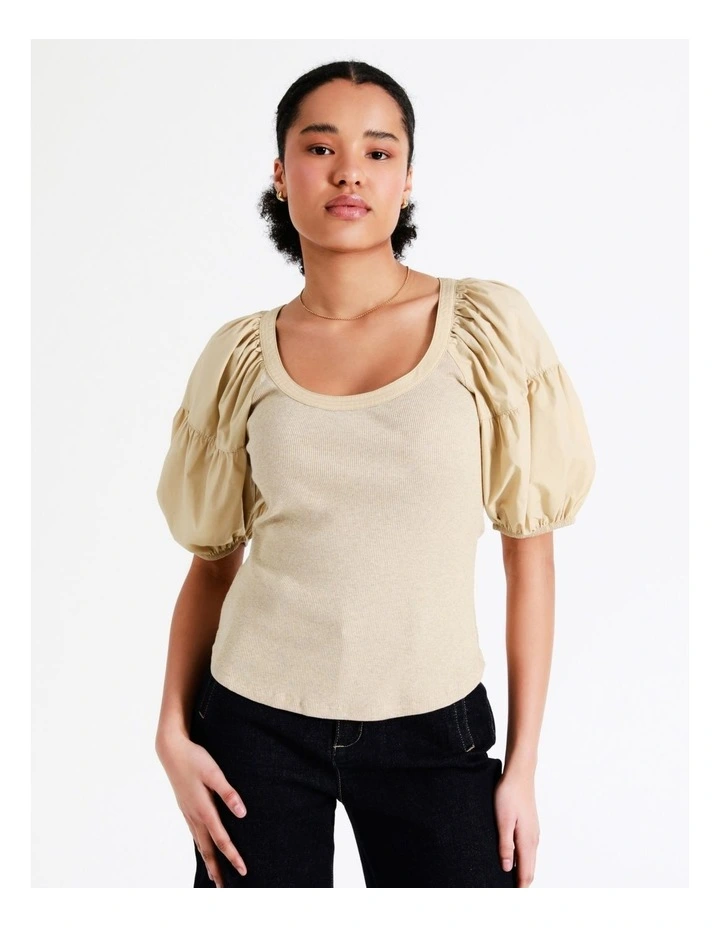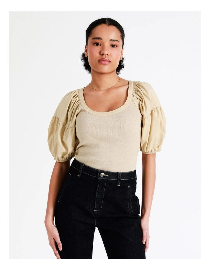 Basque Petites Cotton Contrast Sleeve Top In Beige