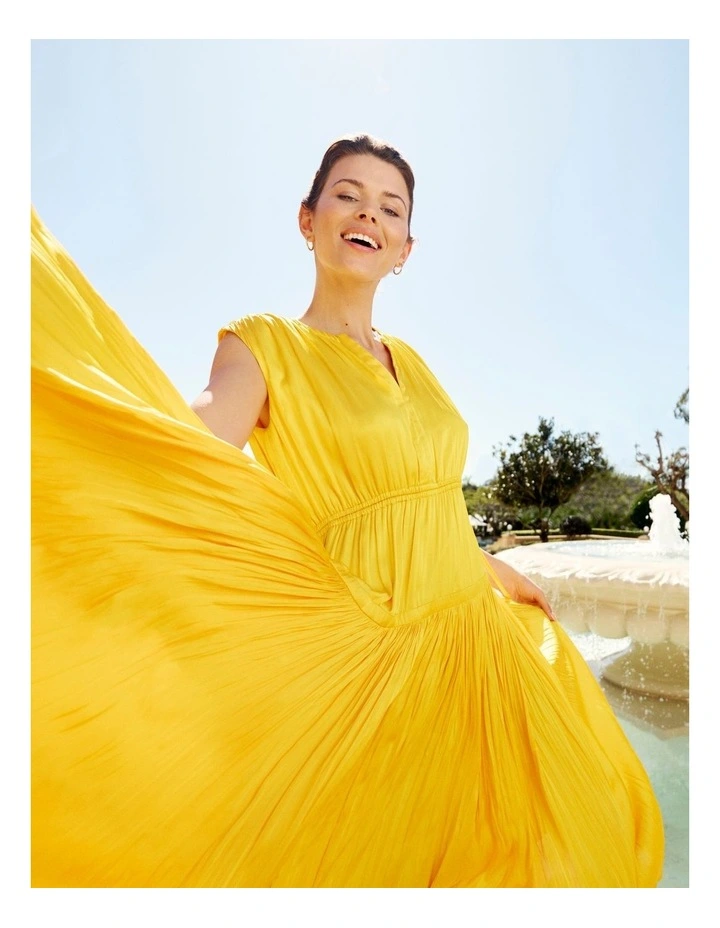 Basque Draped Maxi Dress in Yellow
