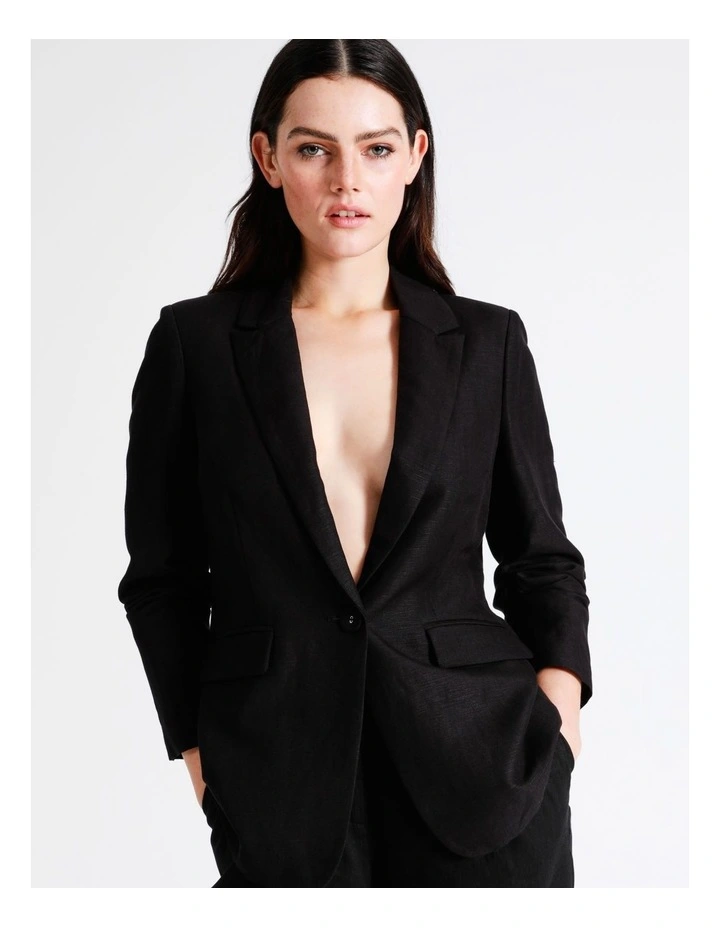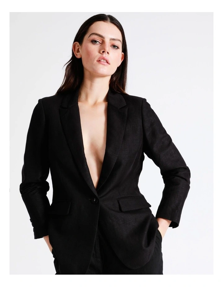 Basque Essential Summer Linen Blend Blazer in Black