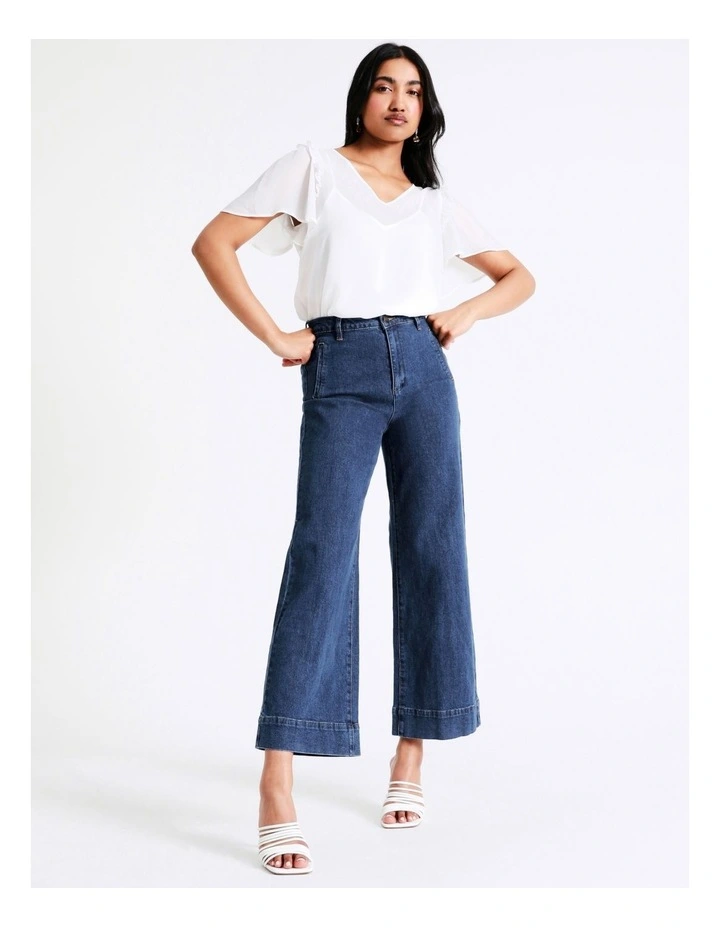 Style a charming look with a flutter sleeve top. This top boasts a sheer overlay, with beautiful flutter sleeves for an ultra-feminine look. A truly versatile piece, you can wear this top from day to night.