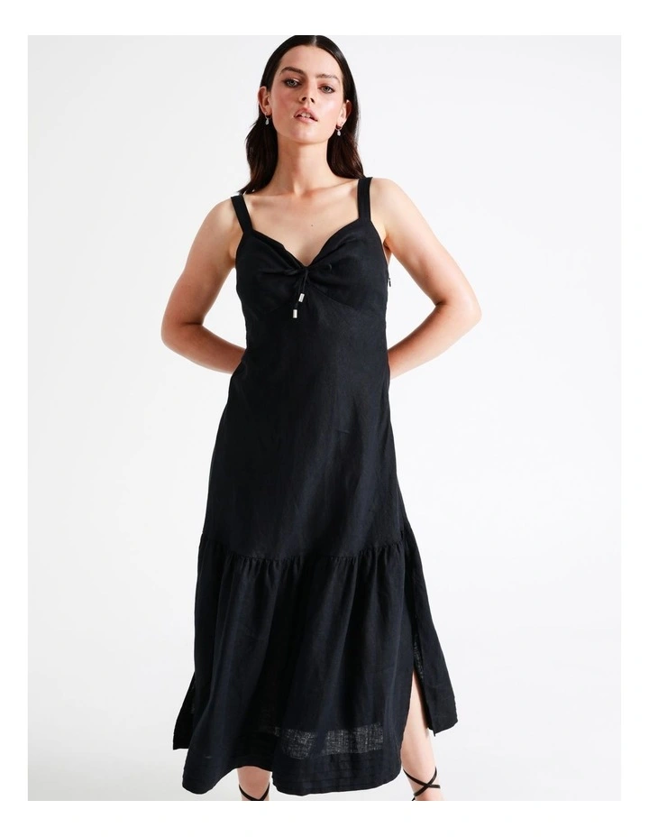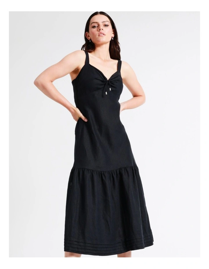 This linen dress is an effortlessly stylish piece. With a lightweight, breathable and soft feel this dress is comfortable to wear during the day and into the evening. Wear it with heels for an event-ready look.