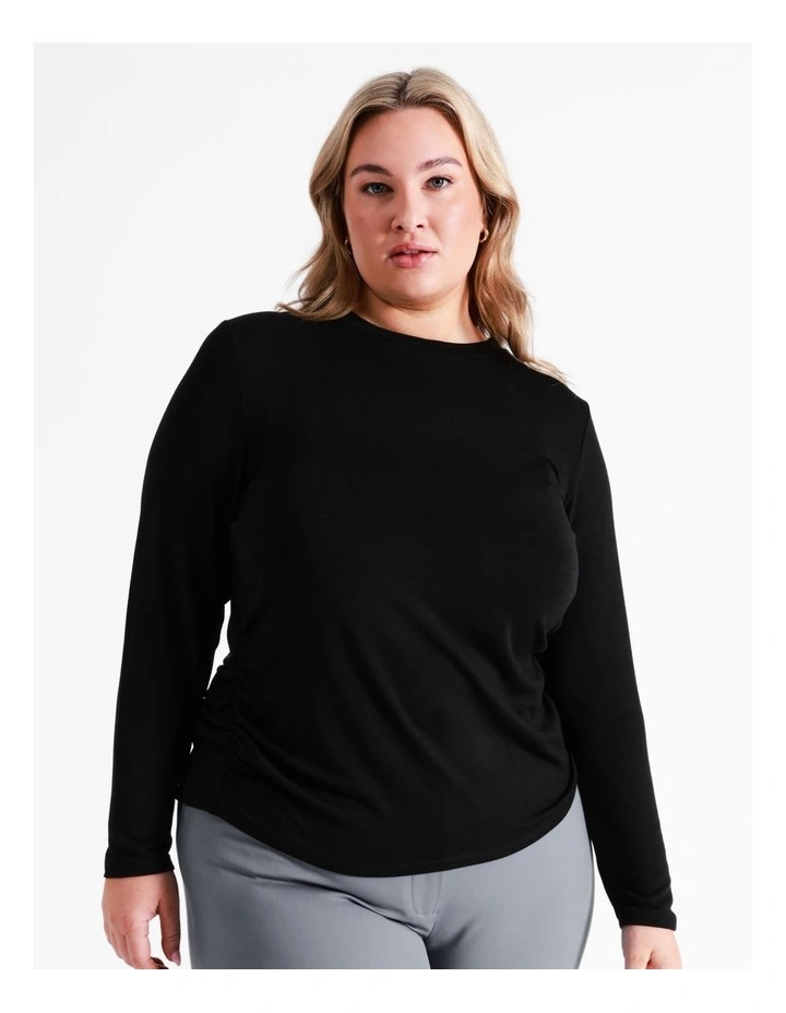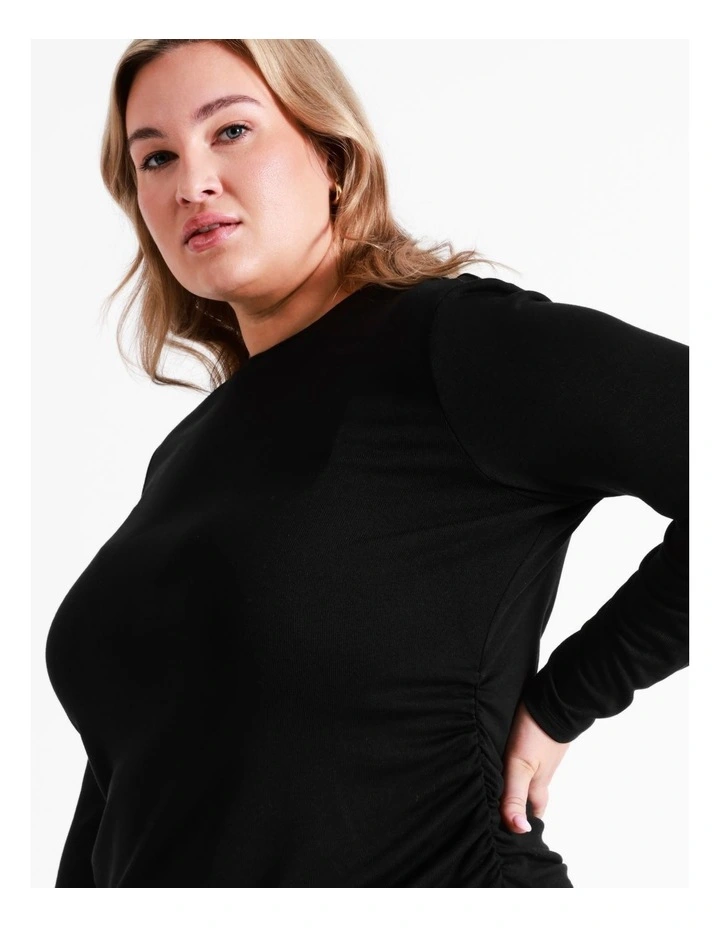 Basque CurveĀ Gathered Long Sleeve T-Shirt In Black