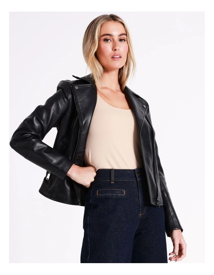 Every wardrobe needs a staple leather jacket. This biker jacket is made from genuine leather, with an effortlessly cool design that you can wear season after season. Wear it over all your favourite pieces, from day to night.