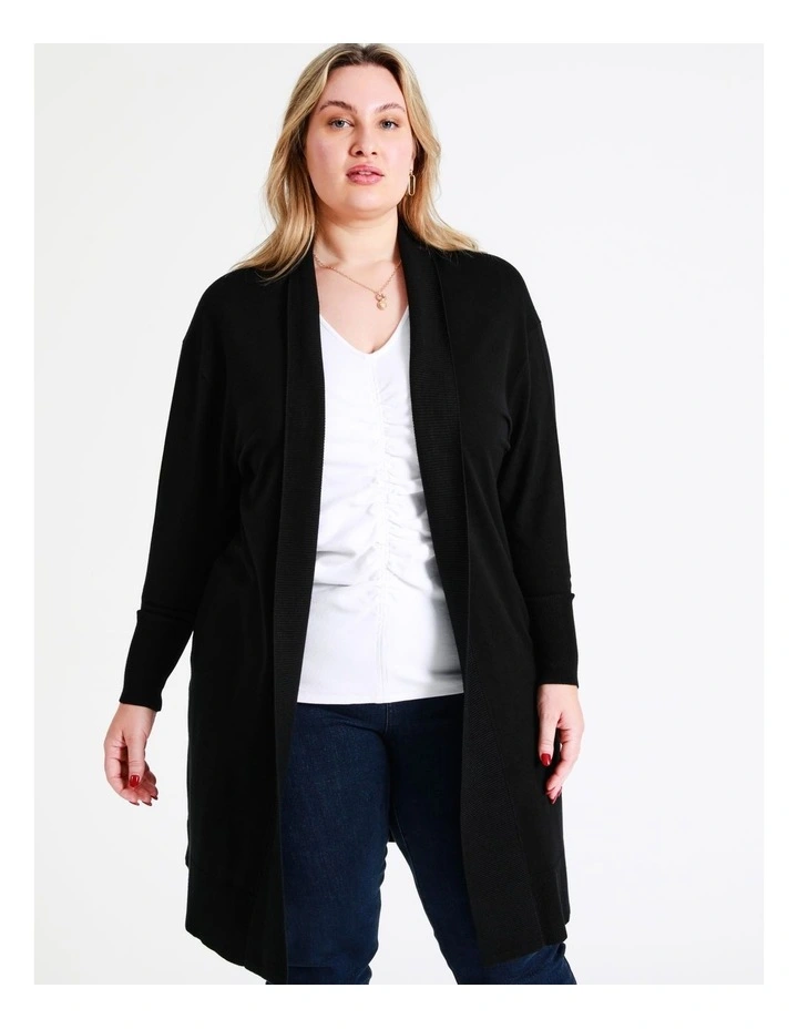 Basque Curve Longline Cardi in Black
