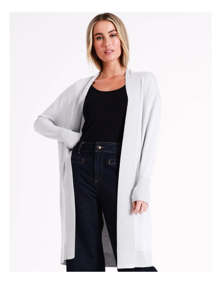 Round out your everyday wardrobe with a longline cardigan. This fashion forward cardigan has a longline design with an open front and long sleeves. Style it with wide leg pants for a chic silhouette.