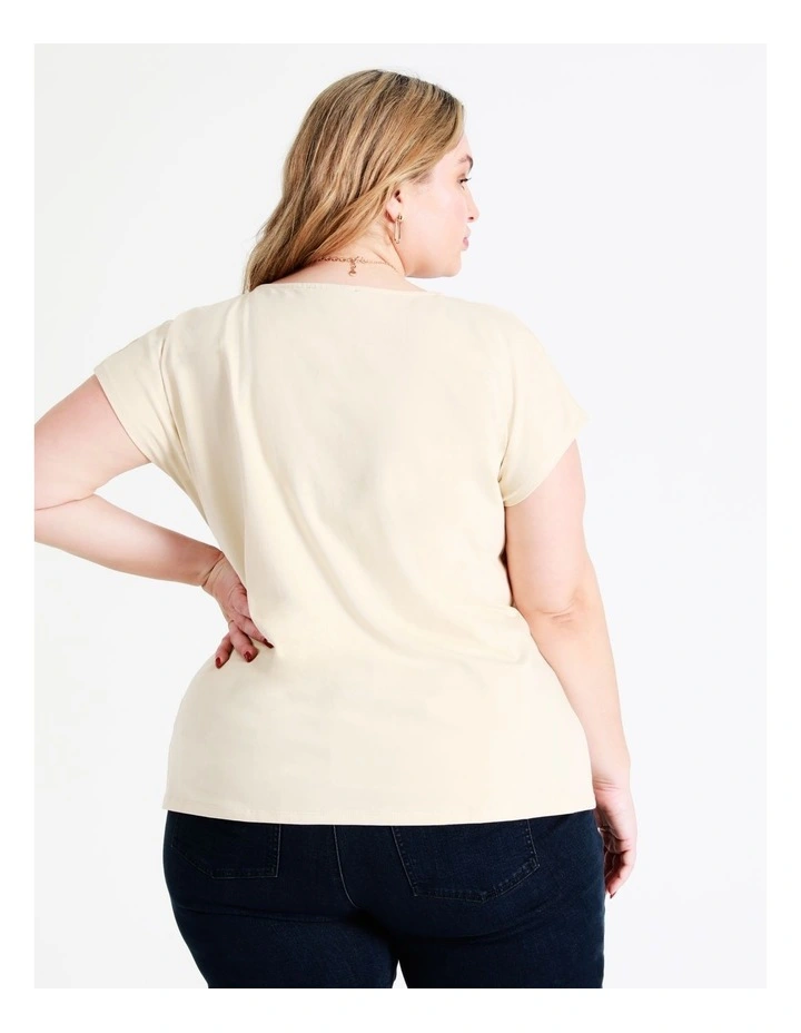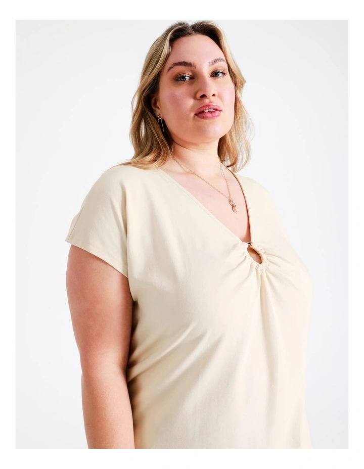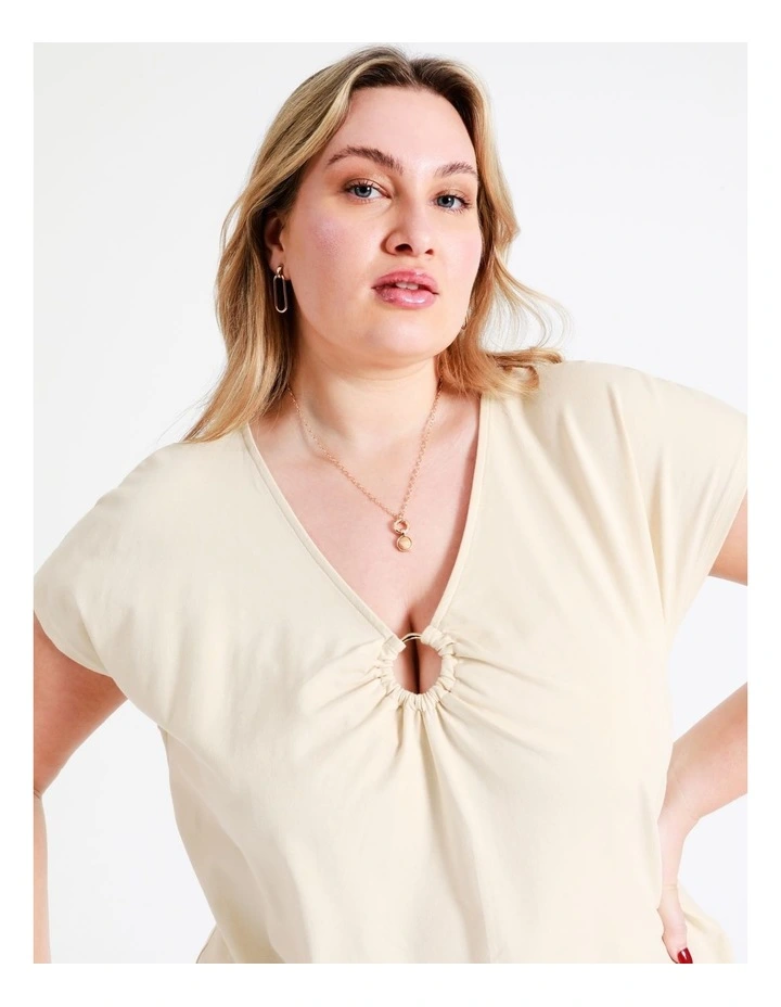 Basque Curve Organic Cotton Blend Ring Detail Tee in Sand