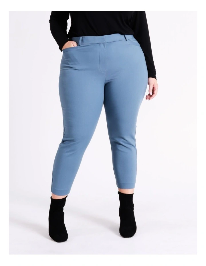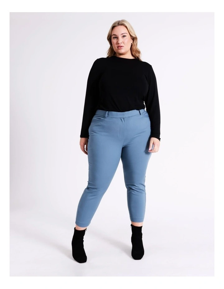 Basque Curve Organic Cotton Blend Sateen Pant In Dusty Blue