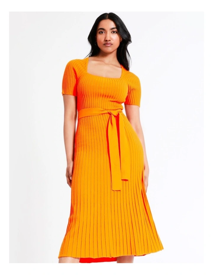 Basque Organic Cotton Ribbed Knit Midi Dress in OrangeÂ