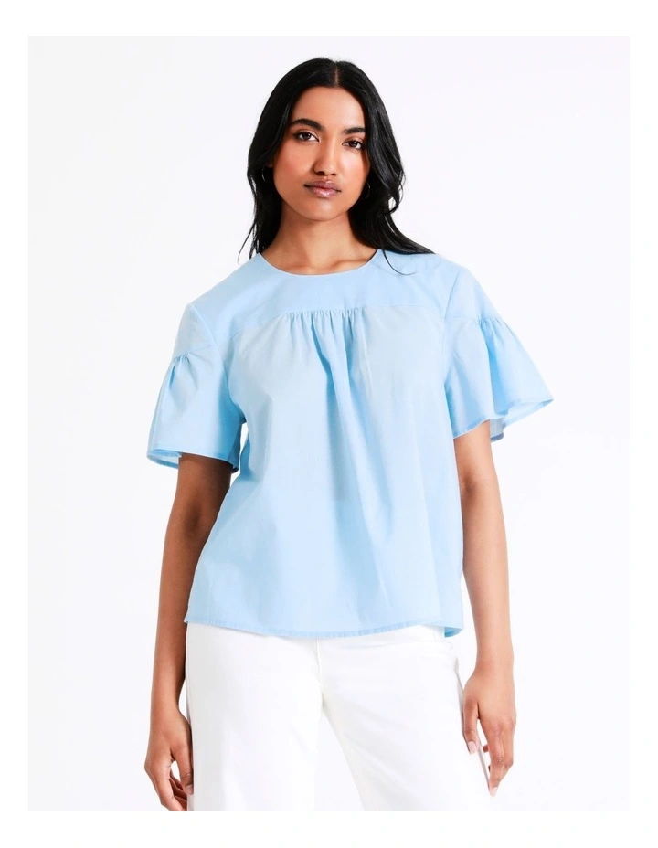 Basque Organic Cotton Voile Top in Sky Blue