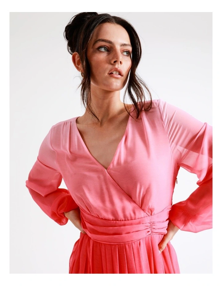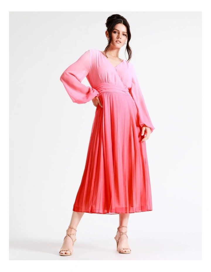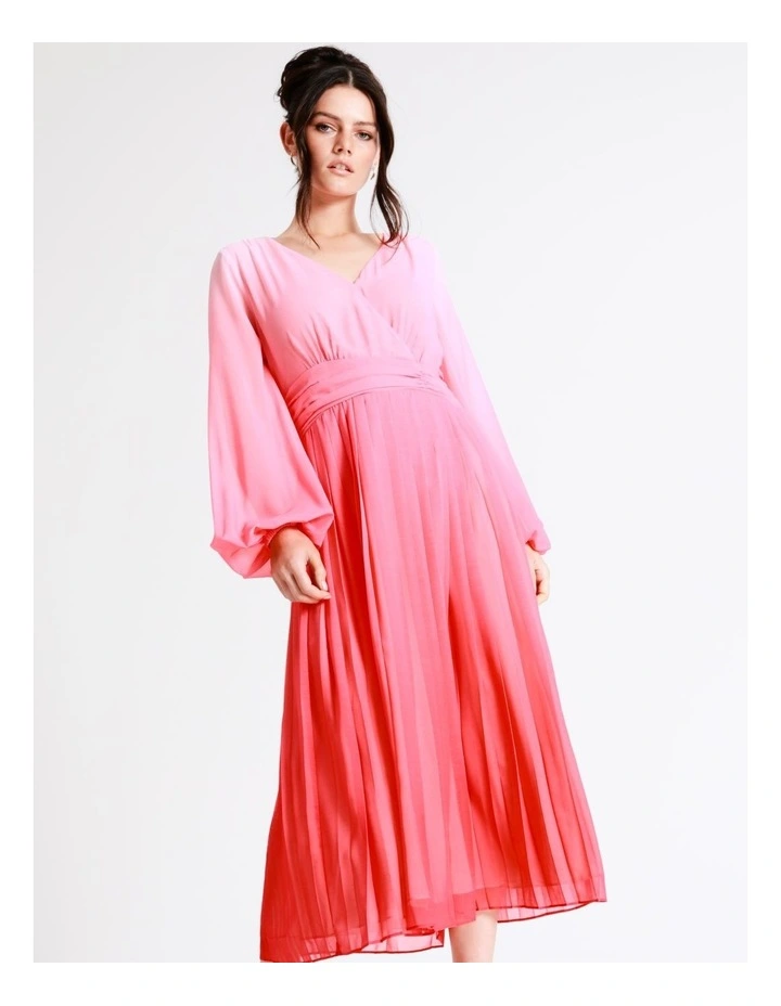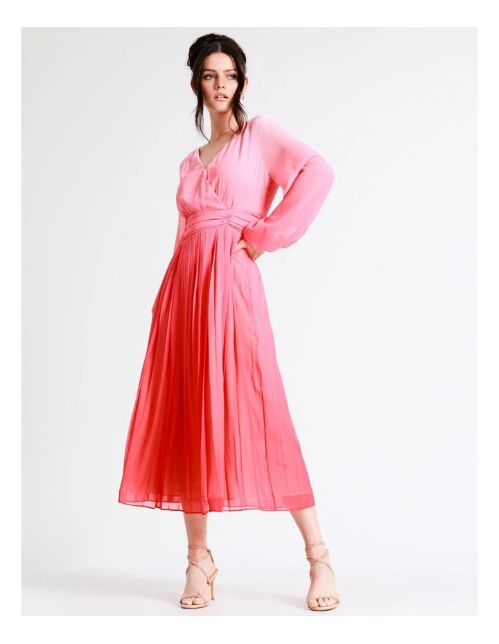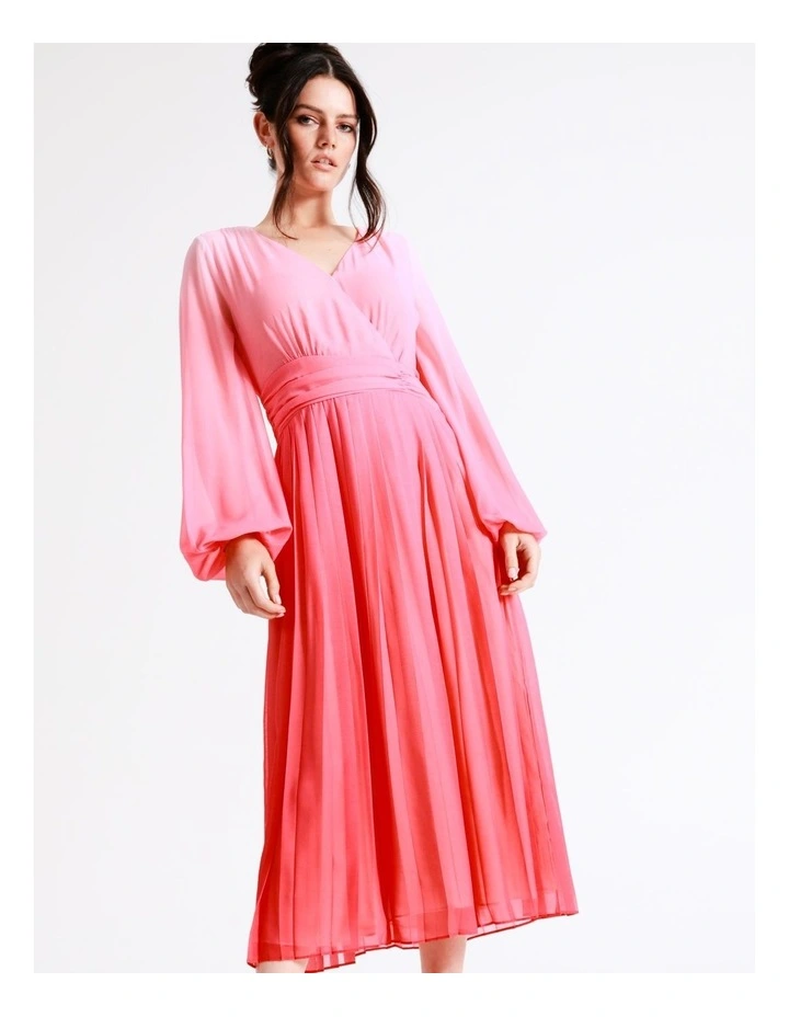 Stylish and sophisticated, this midi dress is perfect for any big event. With a pleated finish, this dress has long puff sleeves and a V-neckline. Wear it with heels for an elegant finish.