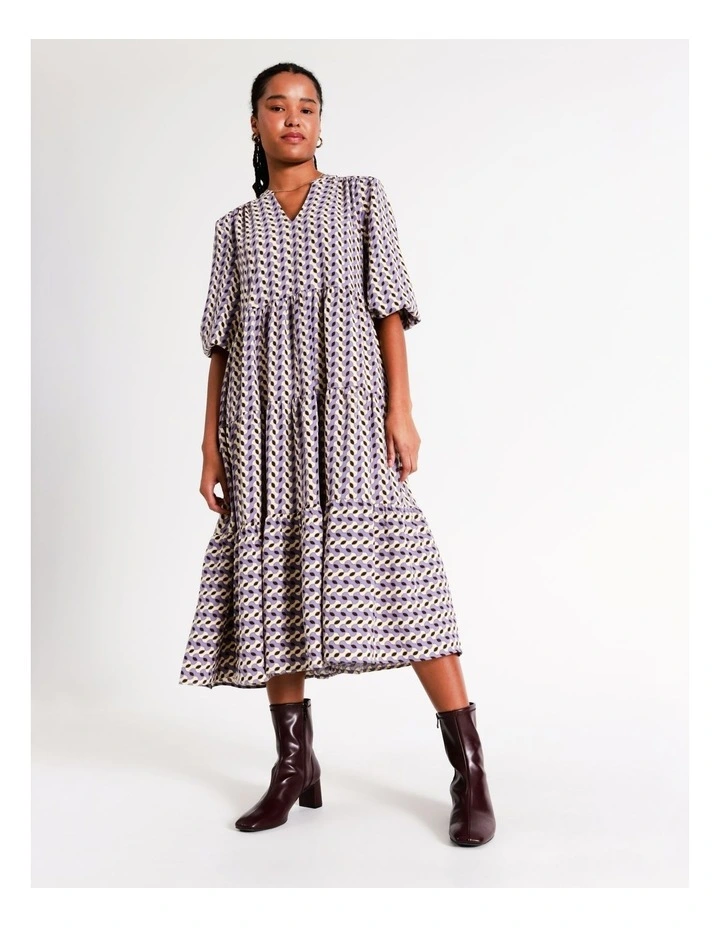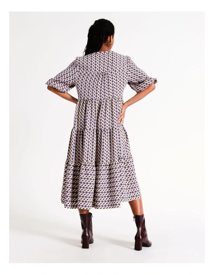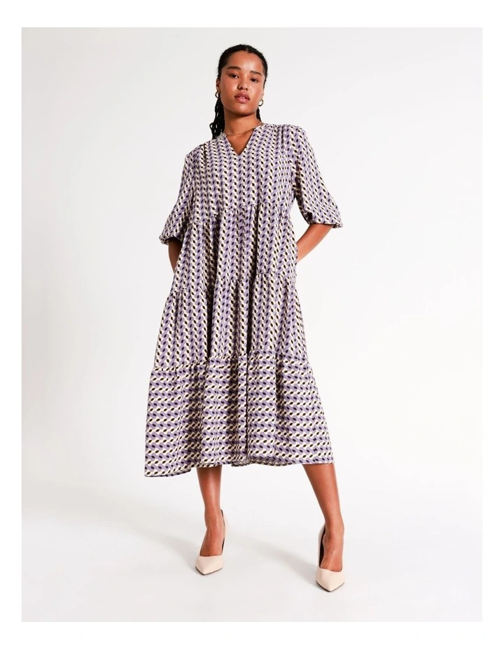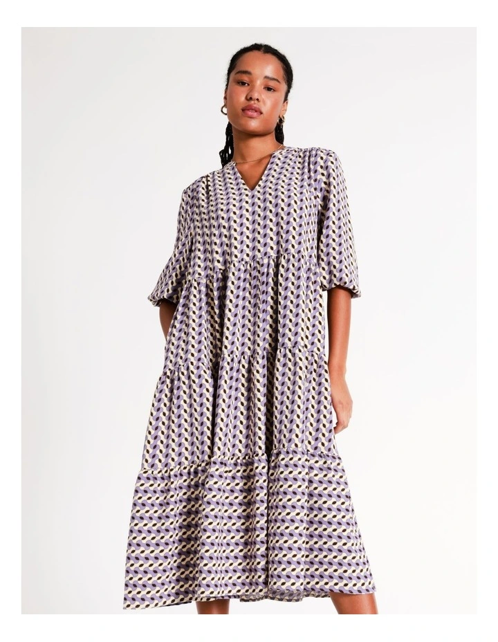 Basque Petites Recycled Blend V Neck Tiered Midi Dress in Purple