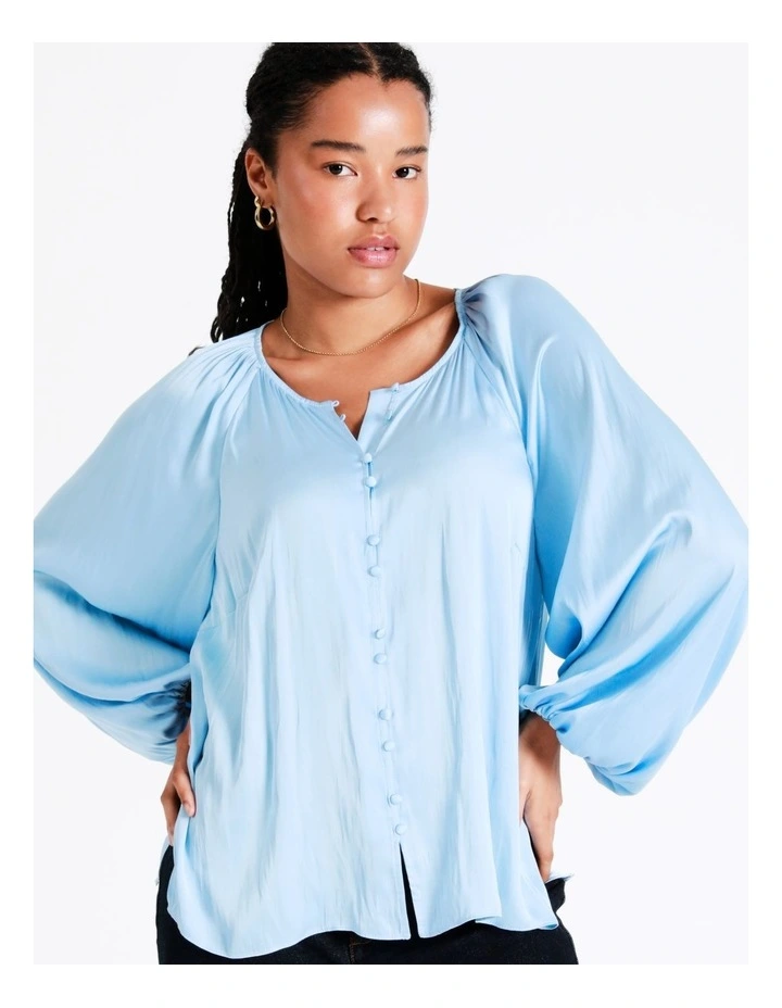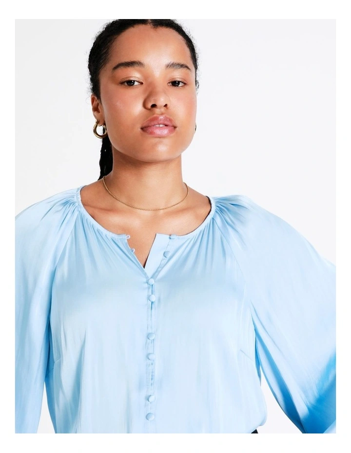 Basque Petites Recycled Bruised Poly Satin Button Through Shirt In Sky Blue