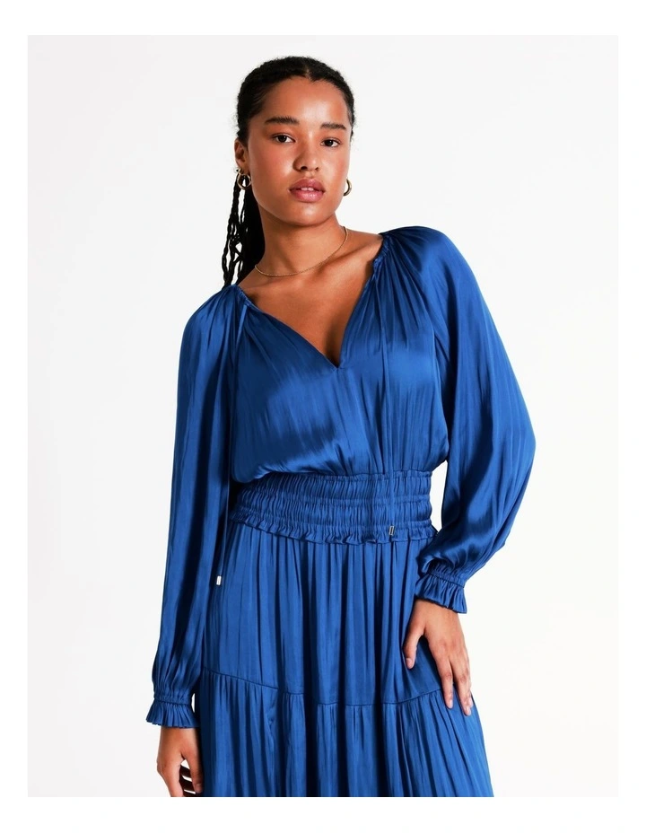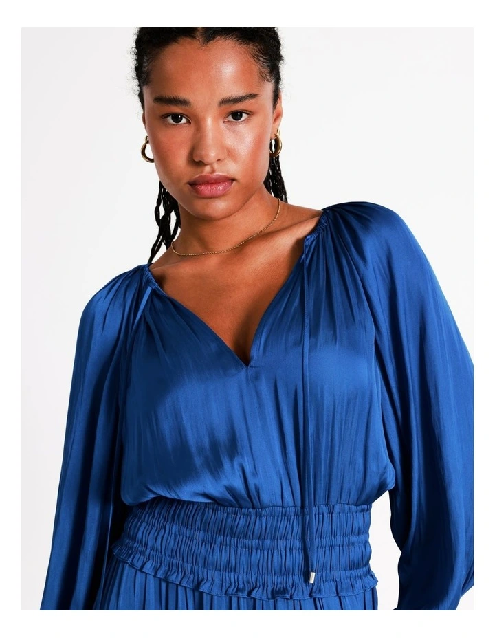 Basque Petites Recycled Bruised Poly Satin Elasticated Waist Maxi Dress In Cobalt