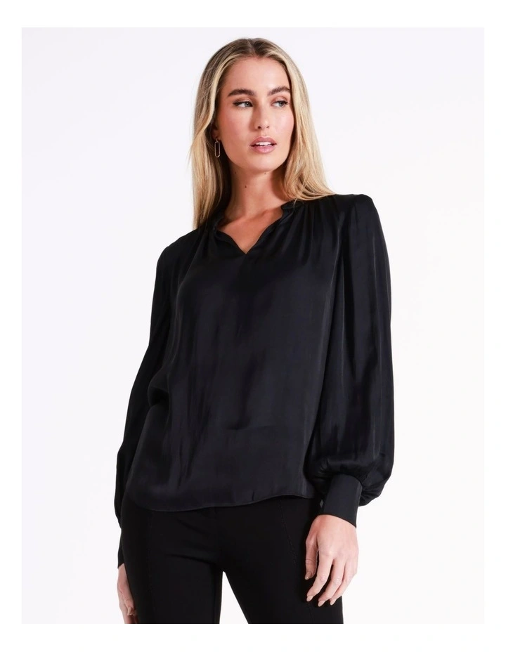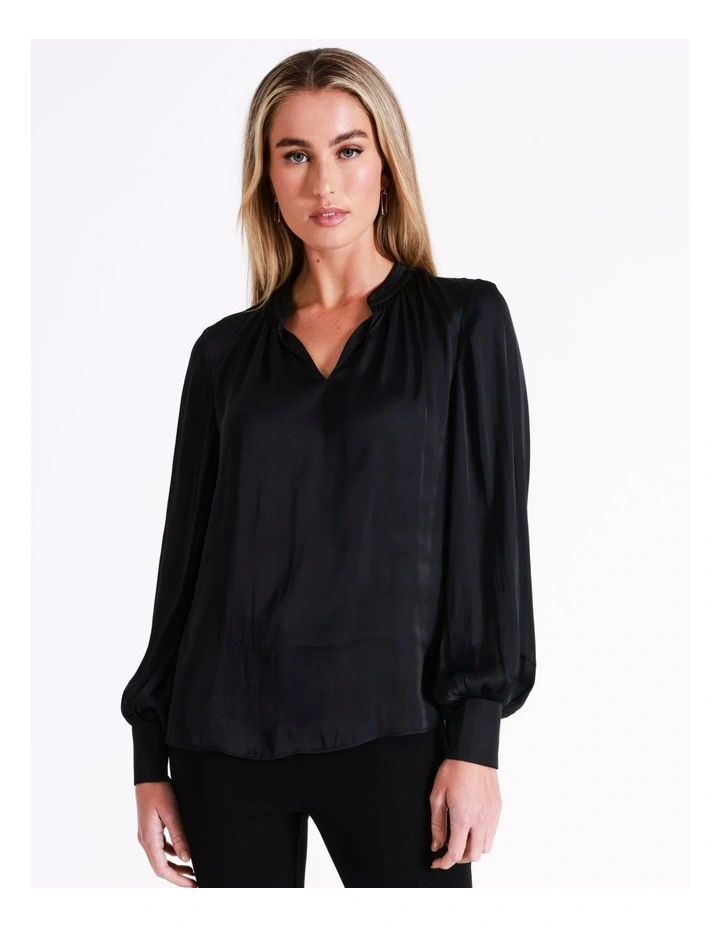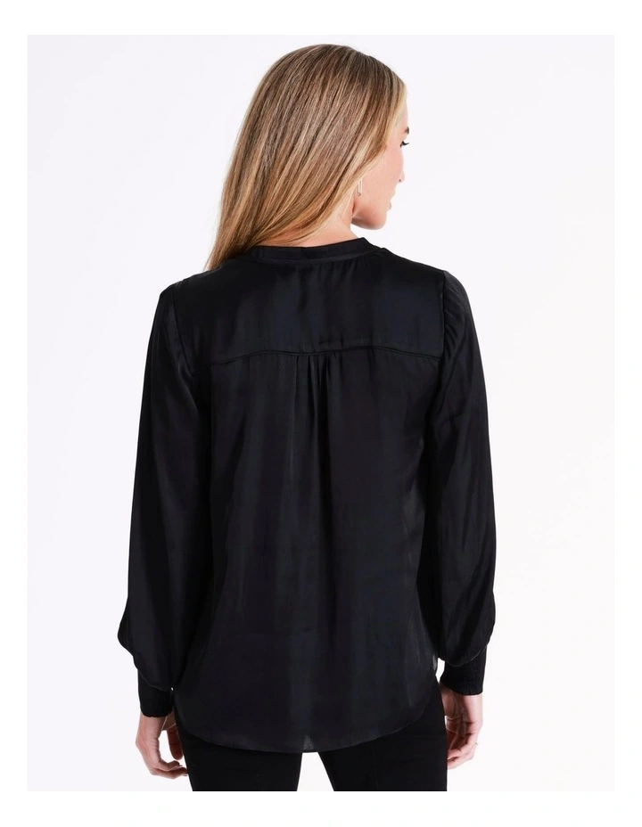Basque Recycled Bruised Poly Satin V Neck Pop Over Blouse In Black