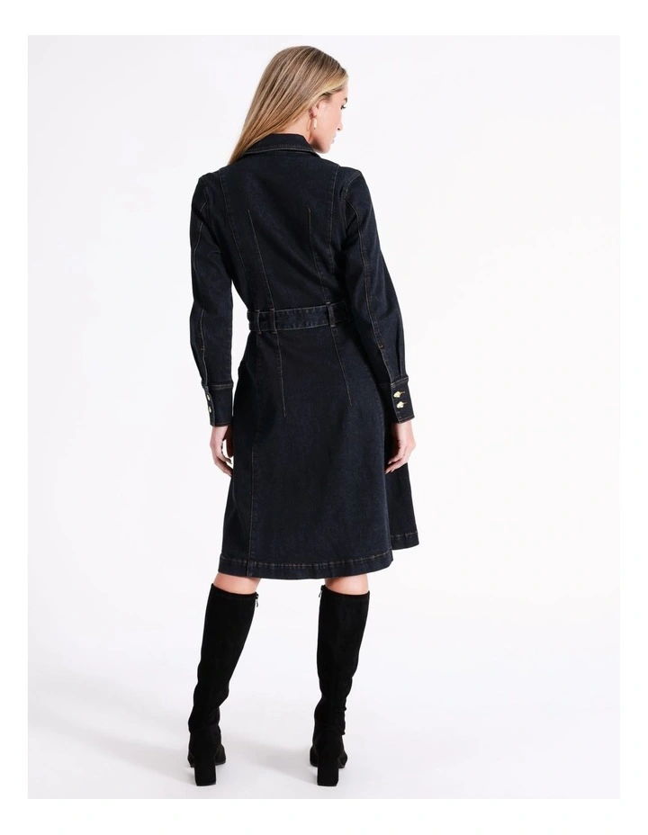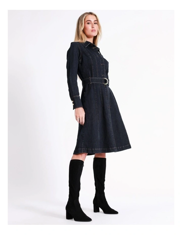 Basque Recycled Cotton Blend Denim Midi Shirt Dress in Indigo