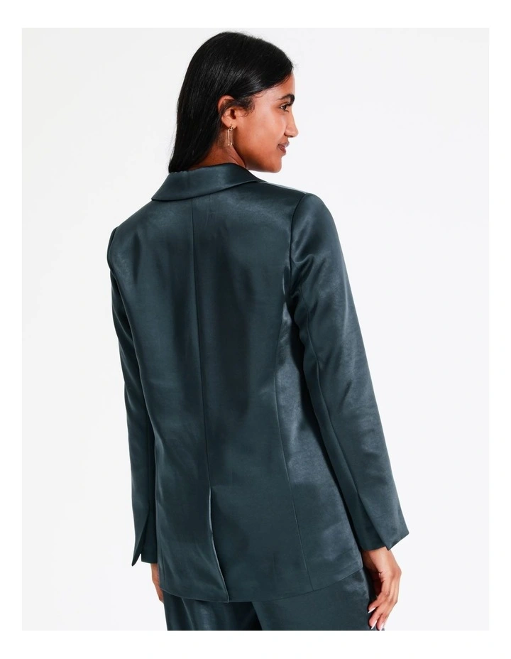 Basque Recycled Poly Satin Blend Single Breasted Blazer in Steel