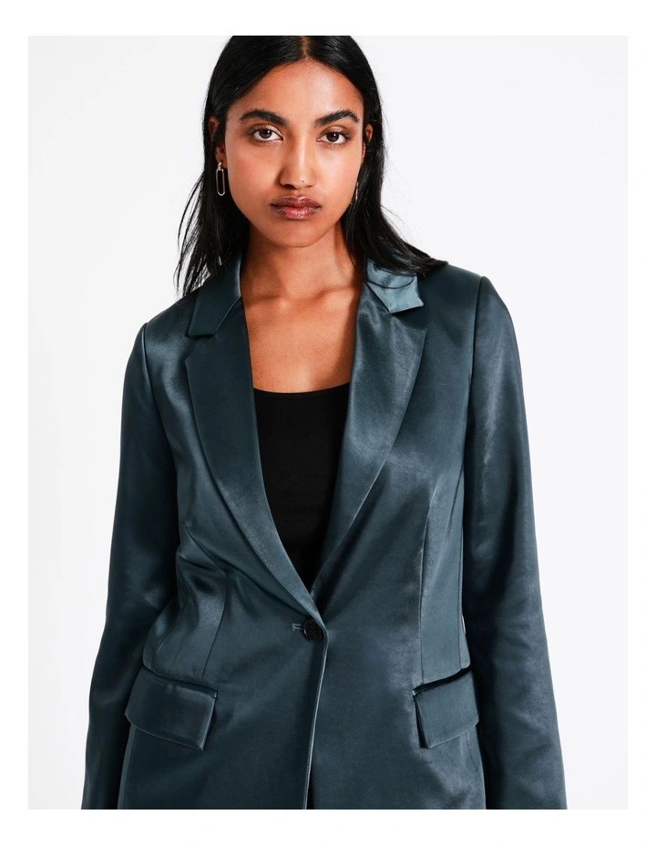 Style a sophisticated look with a contemporary blazer. On-trend and stylish, this blazer has a clean design with a silk-look finish for soft and comfortable wear. Perfect for styling a fashion-forward evening look.