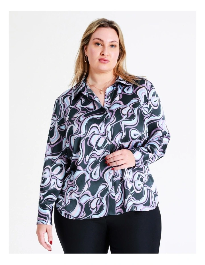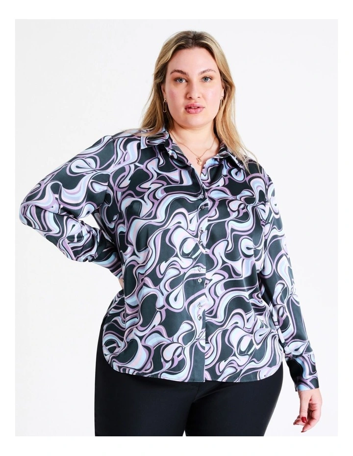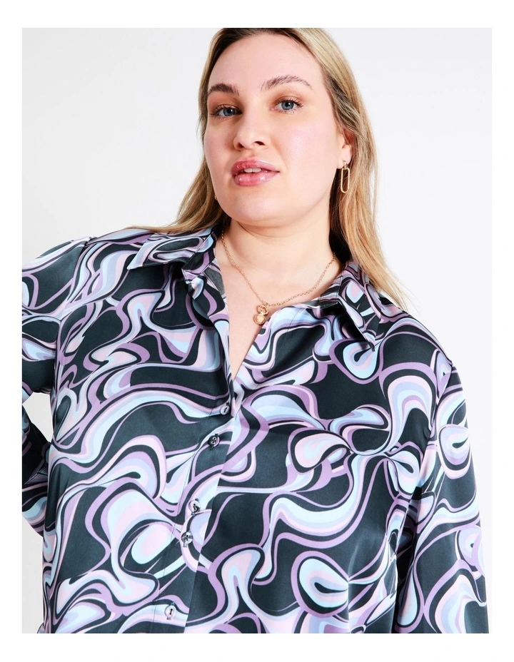 Elevate your look with a statement shirt. Decorated with a striking swirl print, this top is perfect for spicing up your favourite casual and everyday outfits. Made from recycled polyester satin, it’s a stylish and guilt-free purchase.