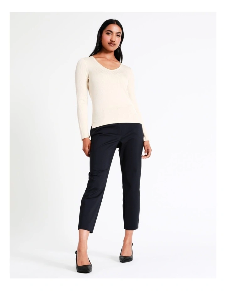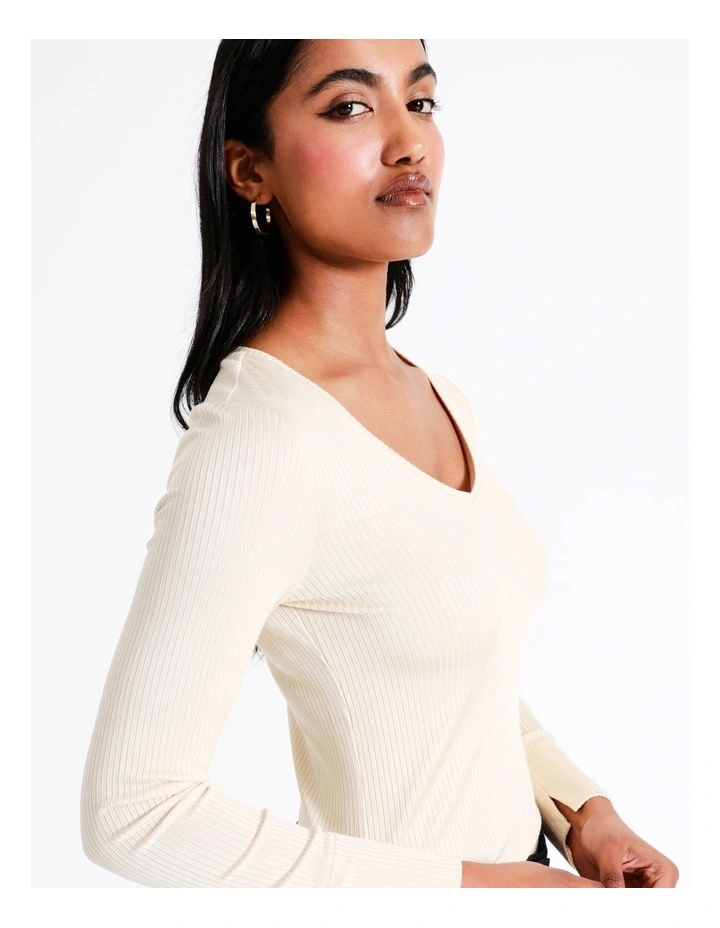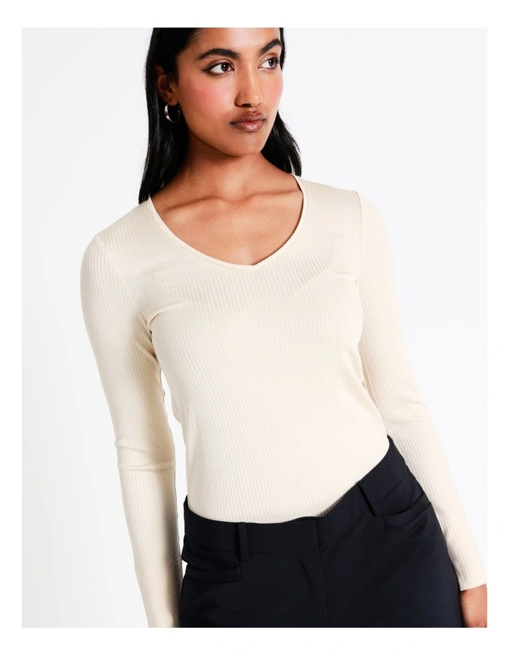 Basque Ribbed Long Sleeve T-Shirt In Sand
