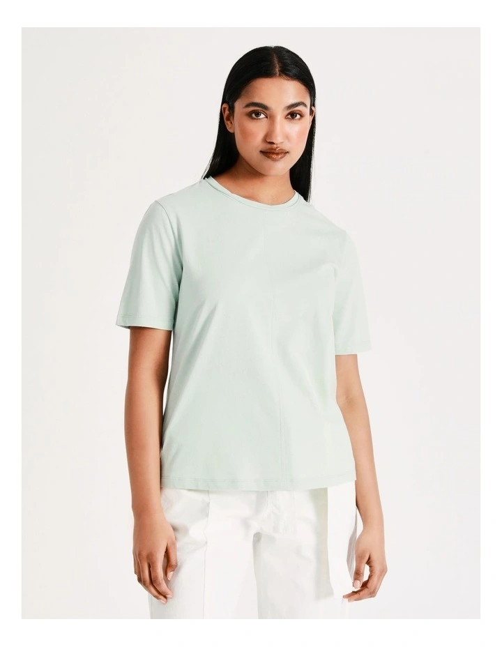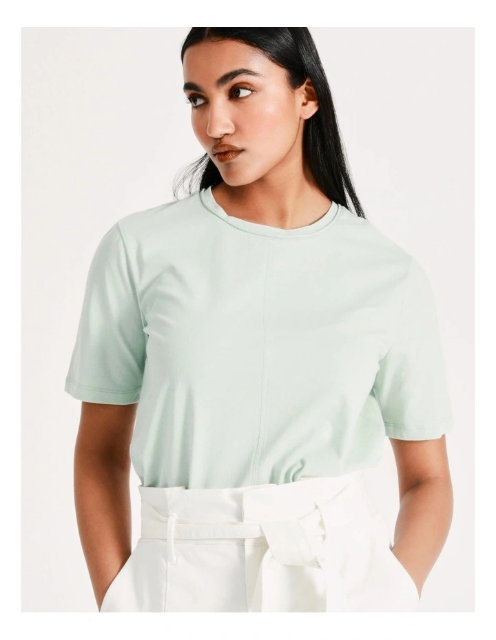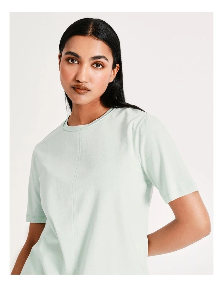 Every wardrobe needs a fashion-forward mint tee. This tee is made from cotton for soft and comfortable wear and boasts a centre front seam detail for a stylish finish. Wear it with your favourite denim for the perfect everyday look.