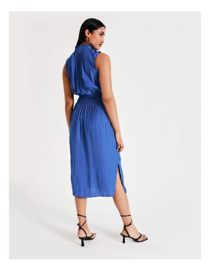 Basque Shirred Waist Recycled Blend Midi Dress in Cobalt