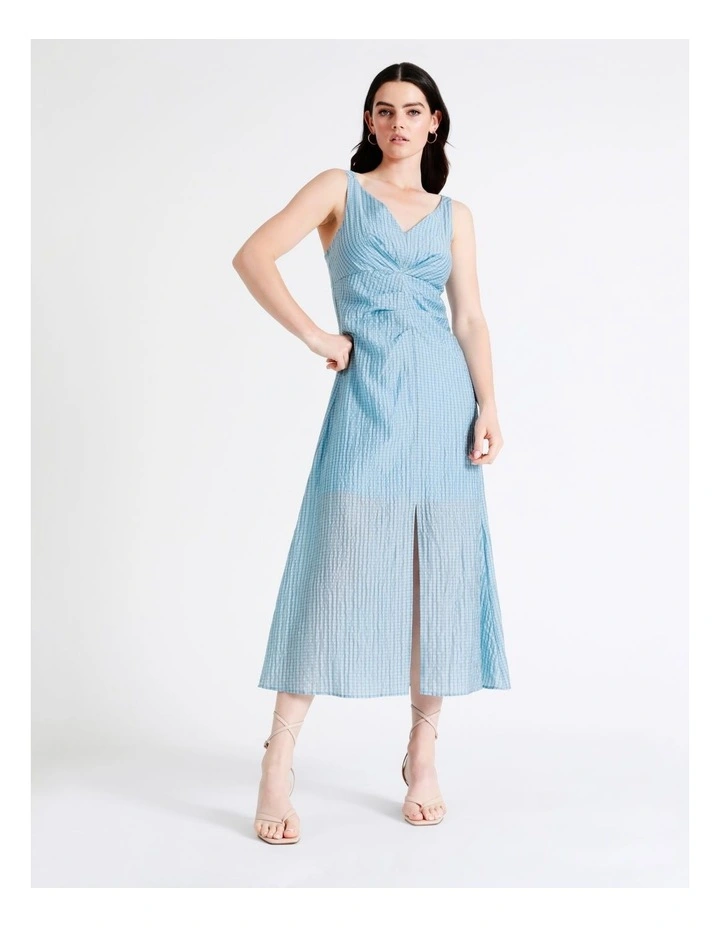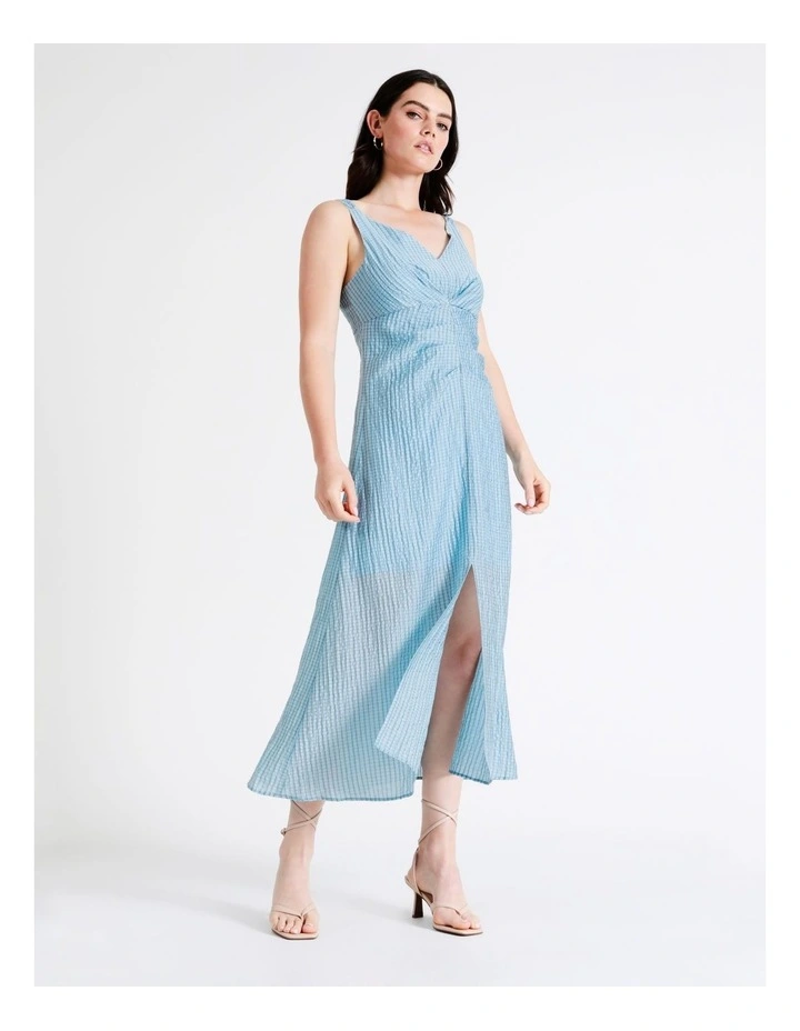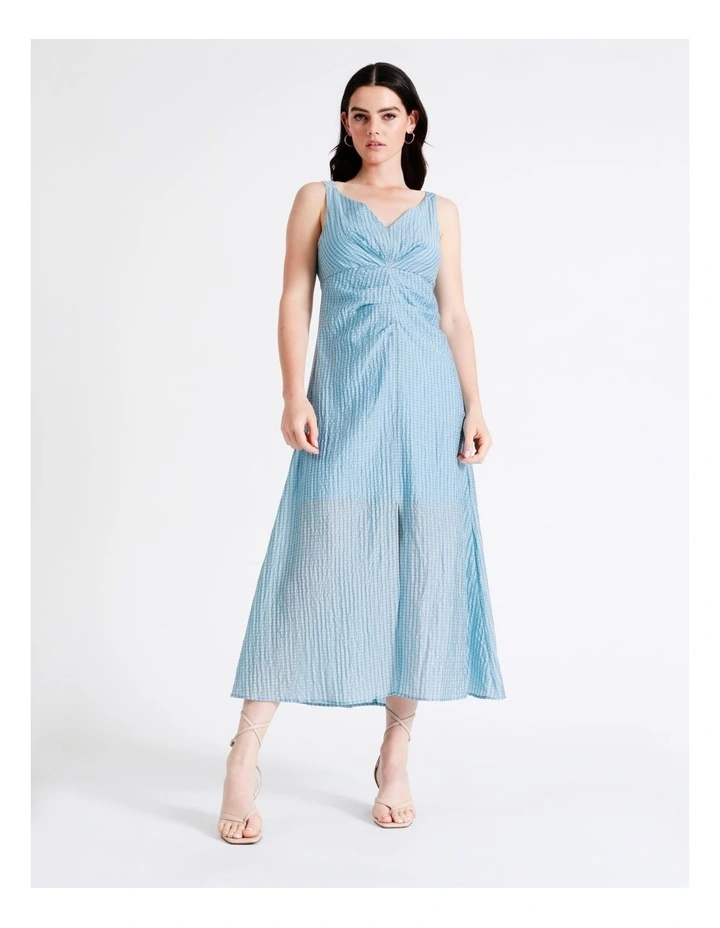 Basque V Neck Maxi Dress in Sky Blue